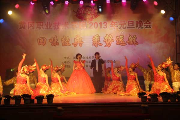 12月28日晚,黄冈职院2013年“回味经典 乘势远航”元旦文艺晚会在大学生活动中心隆重举行。省市外事侨务部门领导,中国人民解放军75310部队九零分队指导员杨勇,中国电信黄州分公司总经理李和珍等领导出席了晚会。校党委书记张鹤桥、校长陈年友、党委副书记王维华、党委委员郑柏松和各教学学院的部分领导以及来自印尼、新西兰等国家的200多名寻根问祖--冬令营的华裔青少年朋友们欢聚一堂,共庆佳节。