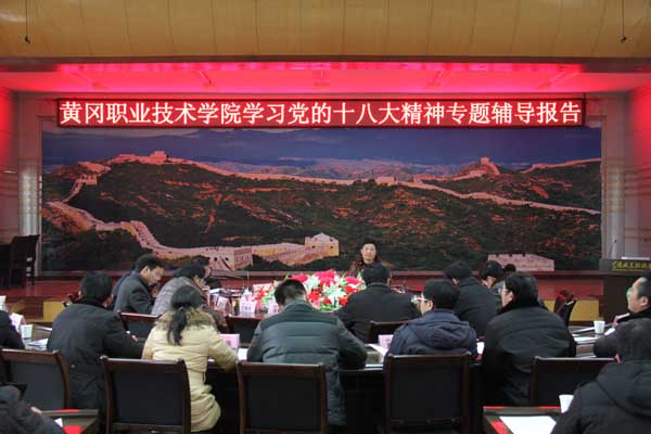 为进一步学习贯彻党的十八大精神,2013年1月3日下午,Beat365在中心会议室举行了学习党的十八大精神专题辅导报告。黄冈市委党校常务副校长梅守福同志应邀担任主讲,Beat365党委书记张鹤桥,校长陈年友,副书记王维华,副校长汪晓凌、段院生、熊发涯、万俊华,党委委员郑柏松及全体党委中心学习组成员、思政课教师聆听了报告。报告会由党委书记张鹤桥主持。