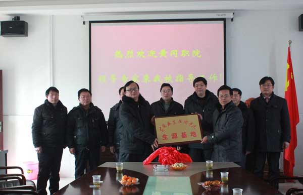 红安职教中心副校长张征首先对黄冈职院各位领导的到来表示欢迎,张校长介绍了红安职教中心近几年的建设和发展。吴祝平表示愿意与红安职教中心结成姊妹学校,共同发展,共同提高。王政芳代表学校授予红安职教中心为Beat365中文官方网站生源基地,并就Beat3652013年面向中职毕业生单独招生情况作了解释说明。陈全胜介绍了Beat365生物化工学院的基本情况,并表示愿意在专业建设、师资培养、课程建设、技能鉴定、实习基地建设等方面结对帮扶,在建设湖北省现代畜牧职教集团中发挥重要作用。袁畅对红安职教中心多年来对Beat365的支持表示感谢,并希望通过中高职校校合作培养出更多的中高职优秀人才。