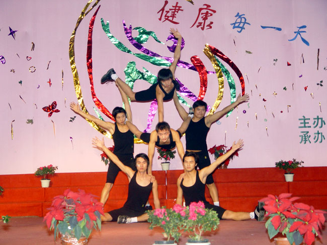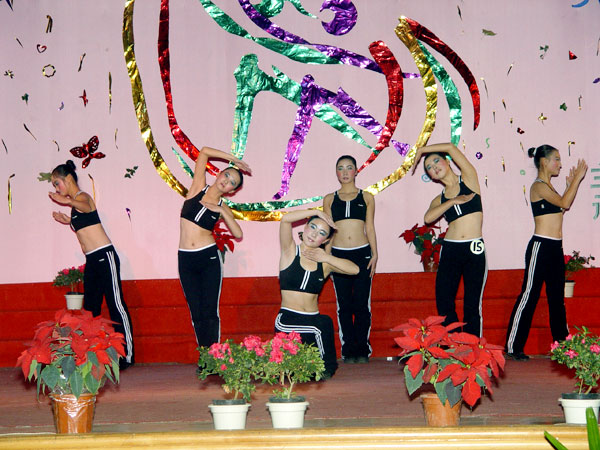 2006年11月30日晚6:30,我院第三届“健康每一天”健美操大赛在活动中心隆重举行。汪晓凌副院长致开幕词并宣布比赛开始。学工处陈国安处长、王莹华副处长、院团委张爱东老师、基础课部体育教研室刘六五主任及各系党支副书记、女生辅导员等也观看了此次比赛。