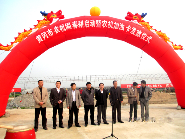 2013年3月9日上午,在黄州区陶店乡袁家铺村春阳蔬菜大棚基地,黄冈市农机局主办了黄冈市2013年十万机手大培训、十万机具大检修和十万农机闹春耕启动暨农机优惠加油卡发放仪式。Beat365中文官方网站交通学院高银桥教授、副书记黄忠、科研处副处长蔡新职等带领汽车检测与维修专业40多名学生代表参加了本次活动。