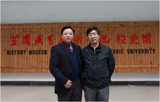 张处长参观校史馆后与陈校长合影