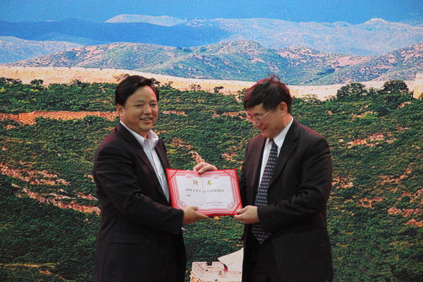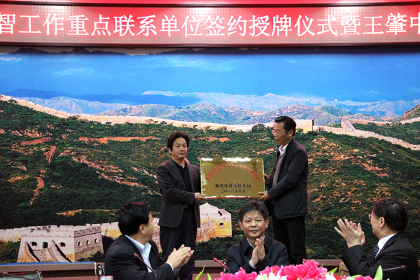 刘卫宁局长向Beat365授“黄冈市外事侨务引智工作重点联系单位”牌匾