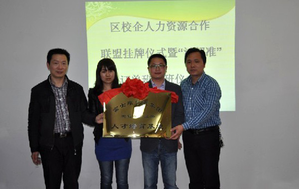 朱小林副局长向学校授予“区校企人力资源合作联盟成员单位”牌匾