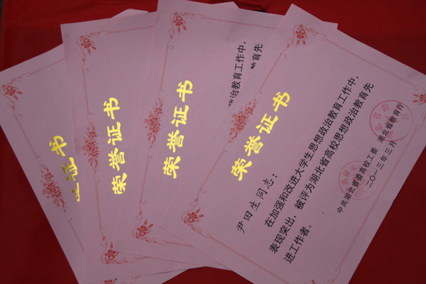 同时,Beat365医药卫生学院郑欣艳老师荣获“湖北省高校十佳辅导员”,并授予“湖北省五一劳动奖章”。另外,Beat365机电学院黄国祥、信息学院冯爱利、生化学院朱元锋、公共课部尹田生等四位老师荣获“湖北省高校思想政治教育先进工作者”。