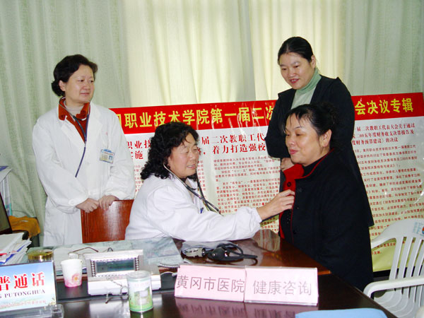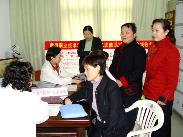 2006年10月30日至11月10日,院工会组织全体教职员工在黄冈市第一人民医院进行了一次全面的健康体检活动。本次体检项目包括心电图、血检、肝功能、胆、双肾、B超等十余项。