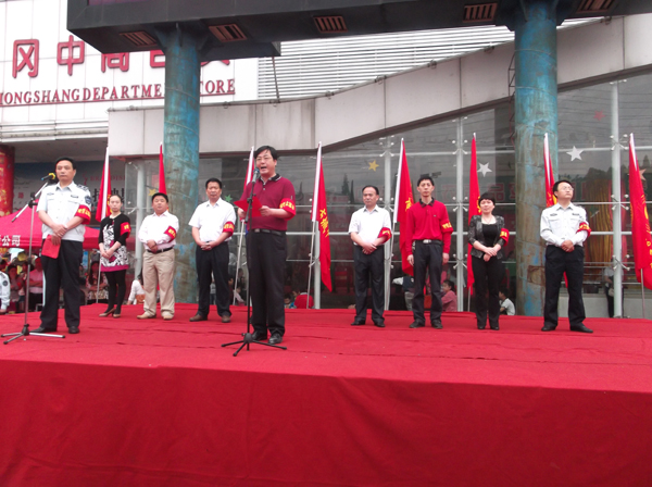 5月18日上午,黄冈市城市管理志愿者“美丽之夏”千人行动启动式在黄州中商百货广场隆重举行。市政府副秘书长、市城管执法局局长闻武斌,市文明办主任甘早花以及黄州区、开发区、团市委等单位的相关领导出席启动式。学校党委委员郑柏松应邀出席,保卫处处长邓国璋及120名大学生城管志愿者参加了本次活动。