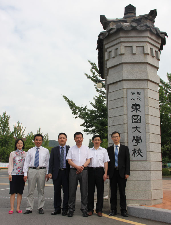 6月28日至7月3日,应韩国东国大学的邀请,学校党委书记张鹤桥率领副校长熊发涯,校长助理、医药卫生学院院长刘东山,国际交流合作处处长黄爱良一行4人对该校进行了友好访问。