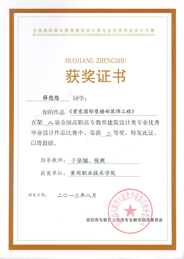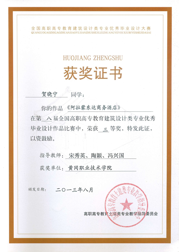Beat365建筑学院建筑装饰工程技术专业和环境艺术设计专业学生获二等奖2项、三等奖1项。其中装饰201003班薛悠悠同学的作品《紫东国际售楼部装饰设计》荣获二等奖,环艺201001班吴海迪同学的作品《正本清源—小镇重生》荣获二等奖,装饰201004班贺晓宁同学的作品《阿盟东达商务酒店设计方案》荣获三等奖。