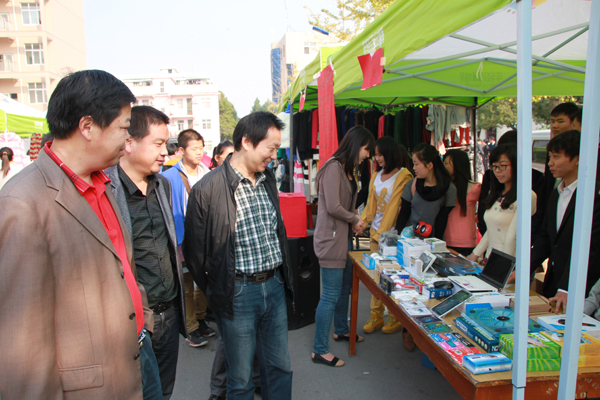 燃情十月,硕果累累,Beat365大学生创新创业实践活动如火如荼。10月26日8:30,为期两天的大学生创新创业俱乐部第一期创业实践活动暨第八届大学生商品展销会在毕昇大道隆重举行。学校副校长段院生,商学院党总支书记吴祝平、副书记杨勇,就业处负责人舒瑞琼,学校团委副书记陈胜红等领导老师参加了活动。