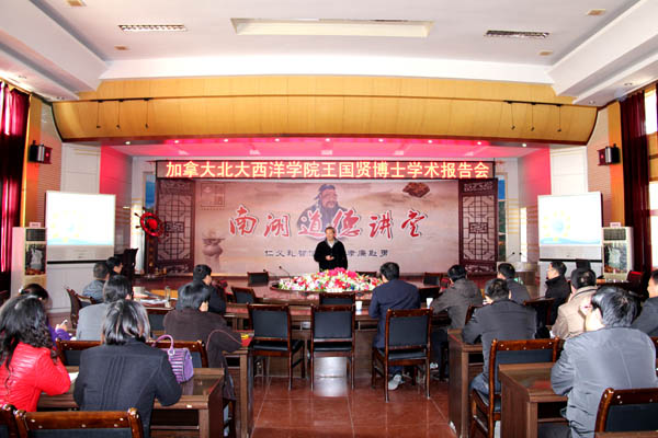 下午14:00,王国贤博士学术报告会在凝智楼中心会议室举行。副校长段院生、校长助理夏学文出席。教务处、质量管理处等部门负责人,教学院部院长(主任)等约50人聆听了报告。王国贤博士从课程大纲、课程设置、教学方法、考评方法等九个方面对中加两国教育差异进行了分析,提出了自己的思考。报告会现场互动频繁,气氛热烈。