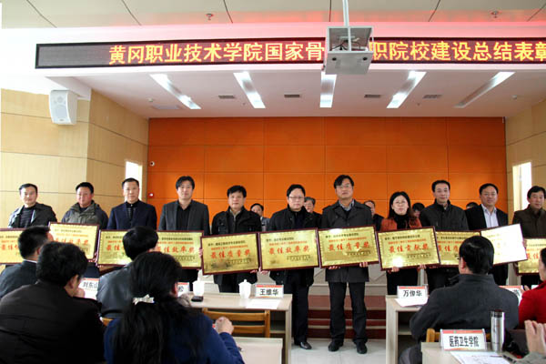 副校长万俊华宣读《关于表彰国家骨干高职院校建设优秀团队、先进个人的决定》。省教育厅、市政府、市财政局领导为荣获优秀团队代表及先进个人颁奖。