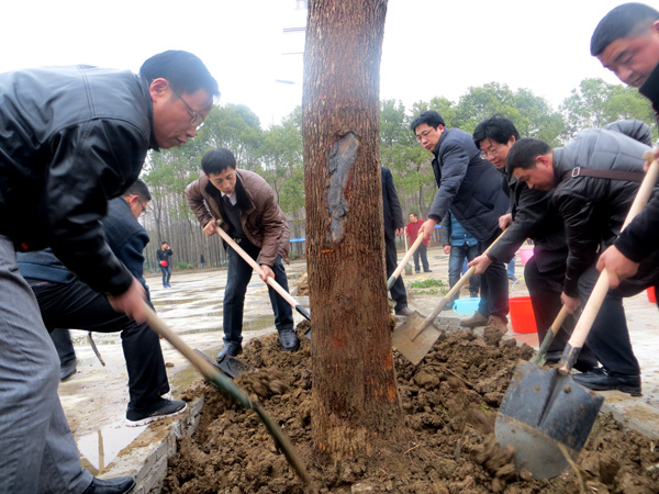 这次植树活动的开展,得到了校领导、党务部、学工处、保卫处、各教学学院的大力支持。在党委副书记王维华、副校长万俊华、工会主席郑柏松等校领导的带领下,大家有的抡锄挖坑,有的手扶树苗,有的挥锹培土,有的提桶浇水,齐心协力种上一棵棵充满生机和希望的香樟树。现场气氛热烈,大家积极为身边添绿,为校园增彩。