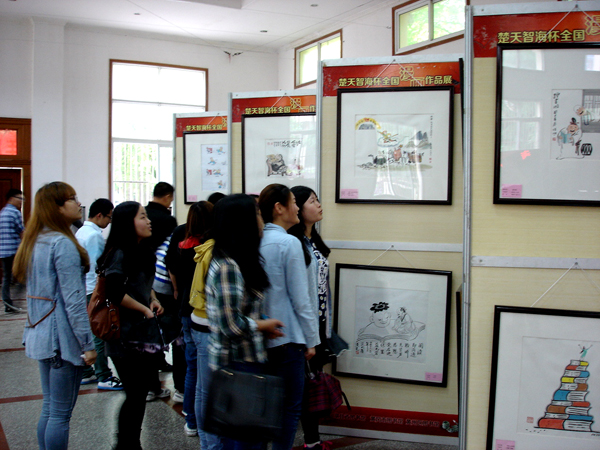 读书节启动仪式结束后,与会领导与师生一起参观了主题为“读——聆听思想的声音”的楚天智海漫画大赛优秀作品展览。