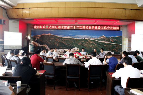 2014年5月26日上午,党委副书记王维华在中心会议室主持召开党委中心组学习会议,集体学习贯彻省委书记李鸿忠同志在第22次湖北省高校党建及大学生思想政治工作会议上的讲话精神和《党政领导干部选拔任用工作条例》,全体校领导及中层干部参加学习。