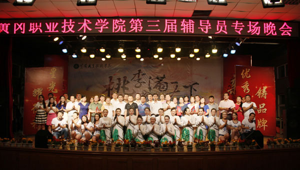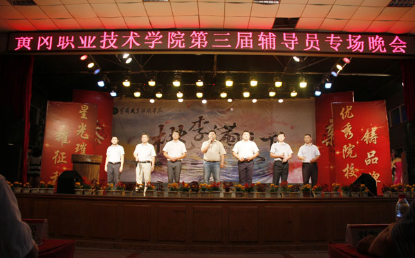 6月16日晚,由学生工作处(团委)主办的“桃李满天下”——黄冈职院第三届辅导员专场晚会在大学生活动中心成功举行。工会主席郑柏松、副校长刘东山、校长助理刘明涛,教务处、学生工作处、团委、保卫处等职能部门负责人,各教学学院副书记,全校辅导员老师以及600多名学生代表一道观看了专场晚会。