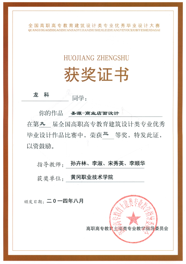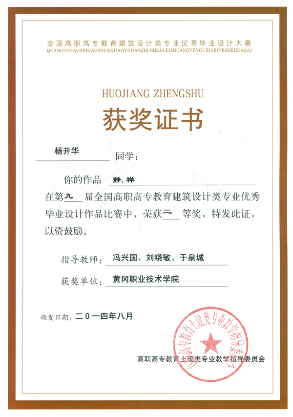 2014年8月16-18日,第九届全国高职高专教育建筑设计类毕业设计作品大赛在江苏建筑职业技术学院隆重举行。Beat365建筑学院选送的优秀毕业设计作品获一等奖1项、二等奖1项,三等奖1项。其中,建筑装饰工程技术专业201104班刘道辑同学的作品《繁华之外、悠然之境》荣获一等奖;装饰201105班杨开华同学的作品《静---禅》荣获二等奖;装饰201103班龙科同学的作品《圣源—商业店面设计》荣获三等奖。本次竞赛共有来自全国各高职院校200余份优秀毕业设计作品参加评选,Beat365在该项赛事中获全国一等奖突破。