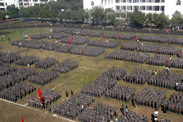 2014级全体新生展示了12天来的军训成果,用嘹亮的口号、英武的军姿、整齐的步伐,依次走过主席台接受检阅,展现了新一代大学生顽强拼搏、激昂向上的精神风貌。