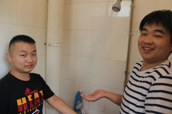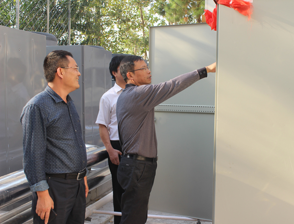 副校长万俊华开启热水系统按钮