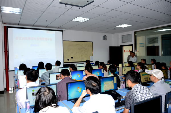 10月9日下午,在汇贤阁10机房,陈冲工程师就“MOOCS化网络课程的平台应用”进行培训,学校所有精品课程负责人、专业负责人和承担此次省级试点百门课程建设的负责人参加了培训会。