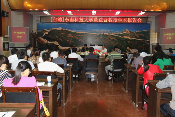 签字仪式结束后,董益吾教授为Beat365教师带来台湾职业教育专题讲座。他重点介绍了东南科技大学在人才培养、产学合作、教师评鉴等方面的一些做法,对Beat365的教学与管理具有重要的借鉴意义。