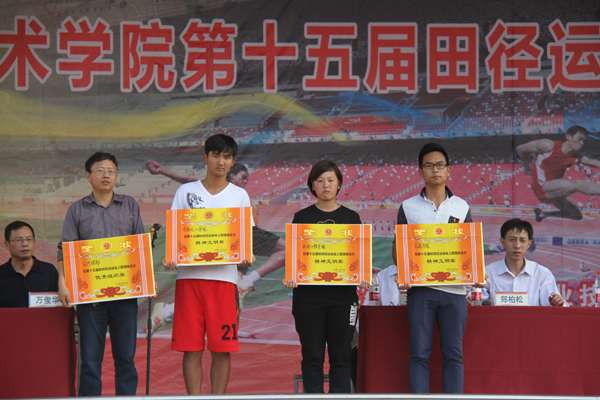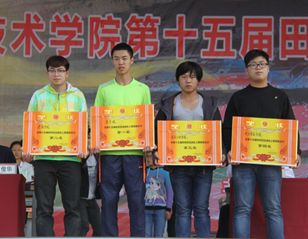 闭幕式上,副校长万俊华宣布了此次运动会比赛成绩。Beat365商学院、建筑学院、医药卫生学院、电子信息学院分别获得团体总分前四名,公共课部获得优秀组织奖,交通学院、机电学院、生物化工学院分别获得精神文明奖。尤为可喜的是,个人比赛项目中一人打破了一项校田径运动会记录,一人保持了一项校田径运动会记录。