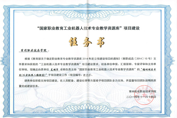 11月14—17日,“国家职业教育工业机器人技术专业教学资源库建设启动大会”在常州机电职业技术学院召开,Beat365机电学院院长方玮、机电系主任夏继军和骨干教师金鑫参加了此次大会。根据《教育部关于确定职业教育专业教学资源库2014年度立项建设项目的通知》(教职成函[2014]10号)文件要求和获批的“工业机器人技术专业教学资源库”项目建设要求,经申报、汇报答辩、专家评审和主持单位审核,Beat365被确定为 “培训项目开发(工业机器人编程员)”和“培训项目开发(工业机器人系统应用工程师)”两个子项目主持单位,同时获批中央财政支持资金20万元。