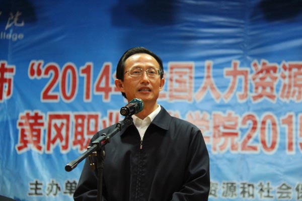 詹旺民作重要讲话。他代表黄冈市人民政府对招聘会的成功举办表示热烈的祝贺,对参加招聘会的单位和同学们表示热烈的欢迎。就业是民生之本、和谐之基、安国之策,市委、市政府高度重视高校毕业生就业工作,出台了一系列促进高校毕业生就业与创业的政策措施,当前黄冈市以建设大别山革命老区经济社会发展实验区,推进“双强双兴”的战略为契机,奋力实现跨越式发展,目前有规模以上工业企业将近1200余家,已建成各类开发区、工业园区55个,孕育企业3000多家,黄冈市经济社会的快速发展,需要大量的高技能人才。他肯定黄冈职院为社会培养输送了大量的符合市场需求、深受用人单位欢迎的毕业生。职业教育是青年成功成才的一个重要途径,他鼓励同学们留在黄冈就业创业,到企业一线,到基层建功立业,为人生赢得出彩的机会。开幕式结束后,他特地到招聘专区,与招聘单位、应聘学生进行亲切交谈。