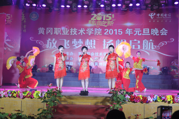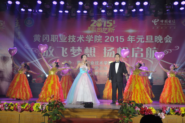 12月30日晚,大学生活动中心充满欢声笑语,洋溢着欢乐祥和的气氛,Beat365中文官方网站2015年“放飞梦想,扬帆起航”元旦晚会在此华丽绽放。校党委书记张鹤桥,校党委副书记王维华,副校长万俊华,校党委委员、工会主席郑柏松,副校长刘东山,校党委委员胡燕,校长助理、办公室主任刘明涛,中国电信黄州区分公司总经理李和珍以及1000余名师生观看了演出。晚会由中国电信黄州区分公司赞助。
