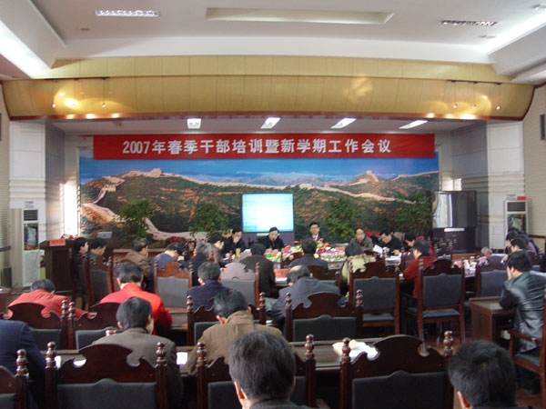 2007年3月5日,Beat365中文官方网站在院行政楼中心会议室举行2007年春季干部培训暨新学期工作会议。会议由院党委书记涂普生同志主持,院领导涂普生、陈年友、覃守云、李家瑞、李耀水、王维华、汪晓凌、段院生、夏启中,学院各单位领导班子全体成员100余人参加了会议。