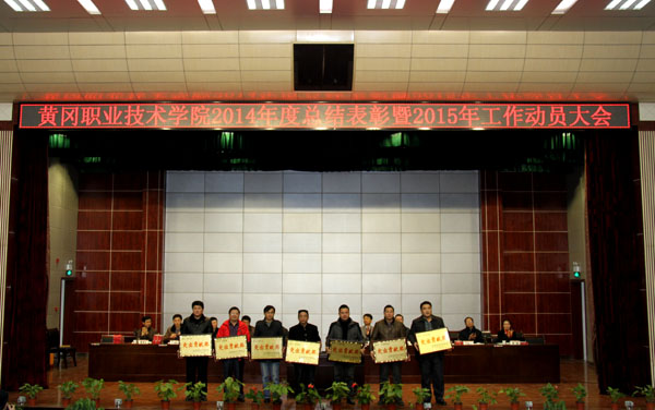 大会上,校长姜安心代表学校党委、行政作了工作报告。姜校长的报告认真回顾总结了2014年学校各项工作,充分肯定了过去的一年所取得的成绩,进一步明晰了2015年学校工作的基本思路。2015年学校工作的基本思路是深入学习贯彻党的十八大及十八届三中、四中全会精神,深入学习贯彻习近平总书记系列重要讲话精神,全面落实全国、全省职教会议精神,坚持育人为本、德育为先,深化改革、强化管理、改进作风、提质增效、创新发展,为加快建成全省领先、全国一流的高水平高职院校再续新篇。重点工作概括为六个方面。一是加强党建,改进作风,确保学校和谐稳定。巩固和深化党的群众路线教育实践活动成果,形成作风建设长效机制。深入开展全国文明单位建设工作。切实加强基层党组织建设,加强管理队伍建设。二是创新机制,规范管理,提升学校治理水平和能力。改革两级管理,稳步推进两级管理。完成学校章程等现代大学制度体系制定。启动十三•五规划编制工作。三是立德树人,全心育人,提升人才培养质量。持续深入抓好教风、学风建设。加强专业建设,调整专业结构,实行新建与淘汰结合,控制专业总数在55个左右和单个专业总规模。创新办学形式,落实五年一贯制培养,推进中高职衔接培养,开展现代学徒制试点。继续开展“职业院校企业行”活动,加大社会培训力度。加强教学条件建设,加强校内实训基地建设和管理。深化教育教学改革,大力推进以学生为中心的教学方法改革,普及推广项目教学、案例教学、工作过程导向教学和信息化教学,注重学生文化素质、科学素养、综合职业能力和可持续发展能力的培养。加强师资队伍建设,坚持教师教育教学、专业实践能力培训和达标活动,加大教师培训工作力度,加大专业教学名师培养力度。加强信息化建设,启动智慧校园建设工程。加强国际交流与合作。提升学生思想政治教育质量,强化学生职业精神培养,注重实践教育、体验教育、养成教育,推进活动育人、文化育人、实践育人,完善全员、全程、全方位育人体系。全面推行导师制。 四是提高认识,加强措施,做好招生与就业工作。对接国家招生考试改革方案,推进学校招生改革。做好就业工作,不断提高学生就业质量。 五是改革创新、加强引导,服务黄冈经济社会发展。推进“十百千万”社会服务工程。做实“十百千万”社会服务工程,主动服务黄冈中小微企业开展技术研发和改造升级。加强科研工作。以项目、基地、团队为抓手,推动广大教职工积极参与科学研究和应用科技成果的产出与转化。六是整合资源,开源节流,促进学校健康发展。加强节约型校园建设。树立全员节约意识,出台《Beat365中文官方网站厉行节约暂行办法》,动员全校上下共同节约开支,公务支出年降低5%以上,水电费年降低3%。加强财源建设。积极争取生均拨款政策的落实推进工作。规范学校对经济目标单位的管理。