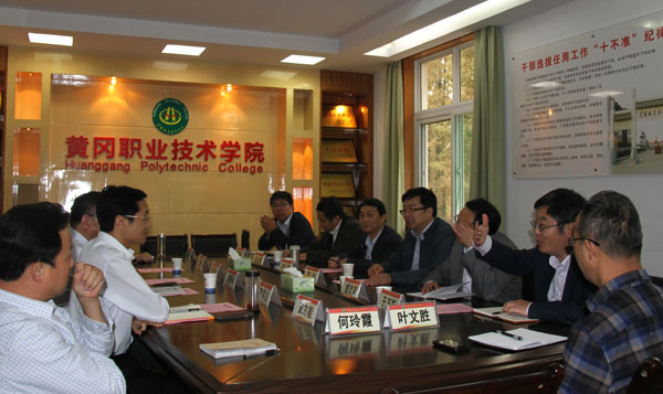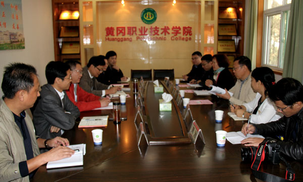 党委书记张新佳、校长姜安心等领导对兄弟院校领导莅临Beat365考察交流表示热烈欢迎,向来宾们介绍了黄冈经济社会发展状况、黄冈特色文化以及Beat365办学历程、办学特色等基本情况,与来宾们交流了各自在办学中的基本做法,并就高职教育如何抓住“十三五”重大发展机遇进行了深入探讨。