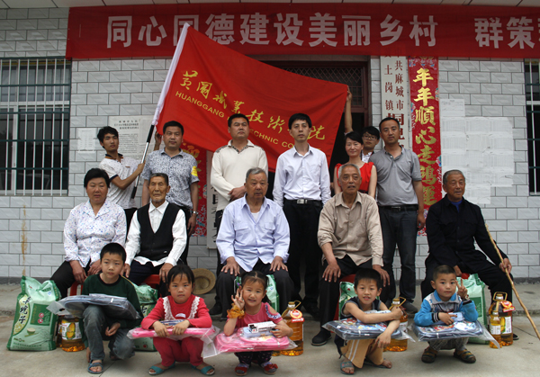 在革命烈士陵园,全体师生在烈士纪念碑前,向烈士鞠躬默哀,寄托哀思,学生代表向烈士敬献了花篮。在郑柏松的带领下,重温了入党誓词。师生们还参观了纪念馆内珍贵的图片资料、实物。讲解员向大家详细讲解了烈士的英雄事迹。整个活动在庄严肃穆的气氛中结束。在黄土岗镇桐枧冲村,郑柏松一行看望了孤寡老人和留守儿童,为他们送去了慰问品,并在村委会门前组织开展了义诊活动。