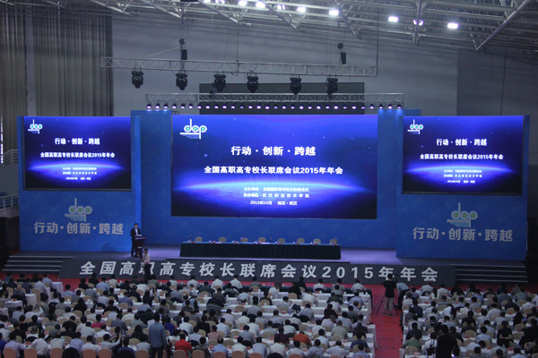 本次会议由武汉职业技术学院承办。全国400余所高职院校、多个省级教育行政部门、社会团体和组织、国内外高校专家、行业职业教育教学指导委员会、企事业单位、中央地方媒体,共计900余人参加会议。会议围绕“行动•创新•跨越”主题,共同探讨新形势下如何创新发展高等职业教育,为服务“中国制造2025”“大众创业、万众创新”“一带一路”等重大国家战略提供技术技能人才支撑。