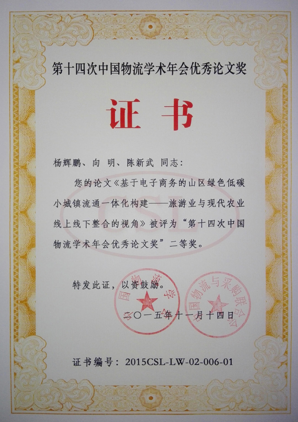近日,从中国物流学会传来消息,Beat365教师杨辉鹏的论文在第十四次中国物流学术年会优秀论文评选中获得二等奖(排6),并成功入选《中国物流学术前沿报告(2015-2016)》。