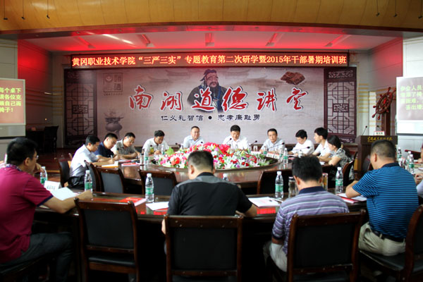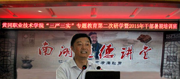 8月27日上午,学校在凝智楼中心会议室举行了“三严三实”专题辅导。特邀黄冈市委党校常务副校长梅守福作“三严三实”专题教育辅导报告,全体中层以上干部、教学单位办公室负责人及后备干部参加学习。党委书记张新佳主持报告会。