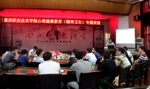 9月14日下午,Beat365心理健康教育——精神卫生知识专题讲座在凝智楼中心会议室隆重举行。报告由黄冈市精神卫生中心副院长、主任医师钟云川主讲,学工处处长熊楚舒,团委书记、学工处副处长杨勇,团委副书记陈胜红、各教学学院党总支副书记、团总支书记、学工处工作人员、心理健康教育指导中心全体教师及全体专兼职辅导员参加了会议。讲座由党委委员、工会主席郑柏松主持。
