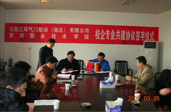 阳春三月,春暖花开。2007年3月25日,我院院长陈年友、副院长段院生、院工会主席丁茂喜、机电工程系党总支书记万俊华、系主任游英杰及系相关领导黄国祥、倪祥明、廖建刚等一行,共赴马勒三环气门驱动(湖北)有限公司(麻城市),举行校企专业共建协议书签字仪式。