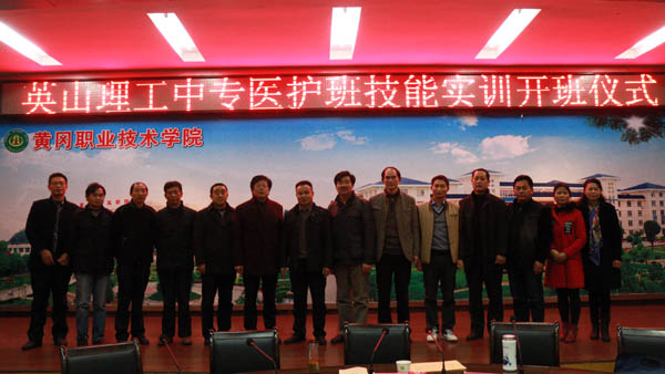 2015年12月12日,英山理工中专医护班技能实训开班仪式在学校中心会议室隆重举行。英山理工中专副校长何亚雄、杨玲珑、徐观明及党委委员肖亚,高三年级主任郝进、肖爱武;Beat365中文官方网站副校长刘东山、招生处处长田安国、教务处副处长范先超,电子信息学院党总支书记冯军、院长罗幼平,医药卫生学院医护专业负责人宋保兰及英山理工中专医护班69名学生参加了此次开班仪式。仪式由田安国主持。