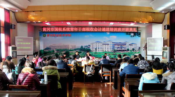 1月17日上午,2016年黄冈市国税系统青年干部税收会计递进班在Beat365凝智楼中心会议室举行开班典礼。黄冈市国税局党组成员、副局长鲁宏斌,教育科科长尤淑琴、副科长覃晓琼,Beat365成教学院院长张世勇,培训班52名学员参加了开班典礼。开班典礼由成教学院院长张世勇主持。