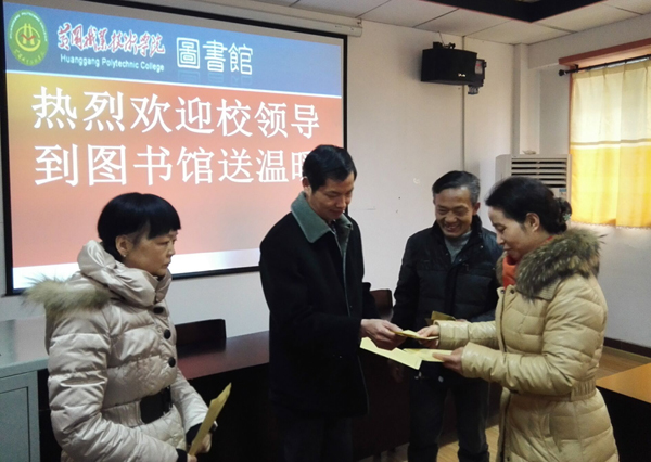 元月21日,胡燕一行先后到后勤服务与保障处、图书馆、生物与制药工程学院、电子信息学院、机关3个总支分别对25位坚守在岗工作的困难职工进行了慰问和交流,在各个总支书记的组织安排下,他们倍感温暖。胡委员与援疆干部杨辉德老师交流时,杨老师非常感动,因为2015年,对杨老师来说是不平凡的一年,他上半年在黄梅参加“三万”工作,下半年前往新疆支教,年过半百的他依然战斗在工作的最前沿,出色表现,从没怨言。机关一总支的王意良老师,家中独子远在新疆当兵,三年未回家一次,当王意良老师得到慰问时,她在办公群里公开致谢,感谢集体的关爱和温暖。