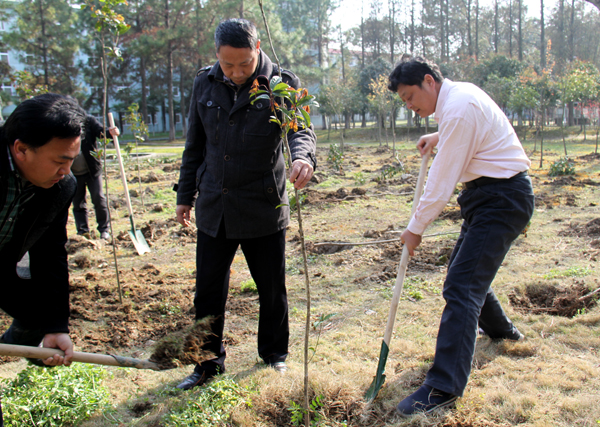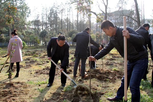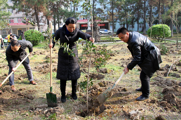 腾飞园内植丹桂 春季植绿八月香 来源:后勤服务与保障处 作者:边学飞 发布时间:2016-04-16 09:02:46 浏览次数: 次 【字体:小 大】 坚持生态和谐理念,优化育人环境。3月11日下午,党委书记张新佳、校长姜安心带领师生在学校南区腾飞园义务植树、建园添香。 植树现场干劲十足,气氛热烈,大家手持铁锹,挖土、扶树苗、培土、拎水,将150余颗充满生机和希望的桂花苗栽种在校园内。 此次活动后勤服务与保障处精心组织,其主旨是提高师生义务植树的意识,激发师生热爱校园、热爱劳动的情感,感受美化校园的意义,共享桂花香满校园的喜悦。 分享到: 【打印正文】