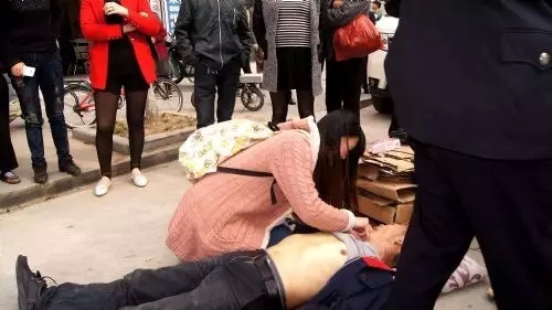3月22日下午2点多,在罗田城南新区中央街口,一位挑着一担纸板的老人突然昏厥,不省人事。一位骑车路过的女孩见状,二话没说,立即下车,检查老人的瞳孔和脉搏后,跪地给老人按压心肺,几分钟后,见老人瞳孔收缩,女孩将手伸进老人口腔,将口中浓痰抠出来。