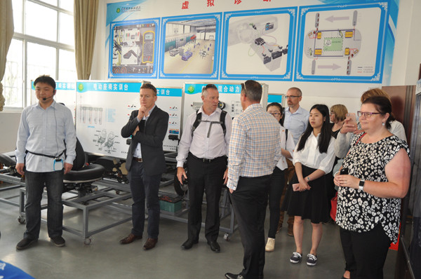 随后,客人们来到汇贤阁,分别参观了汽车检测与维修实训室,机电学院3D打印实训室,商学院淘宝实训室,建筑学院建工实训室,电信学院画室,听取了Beat365实践教学的相关介绍。