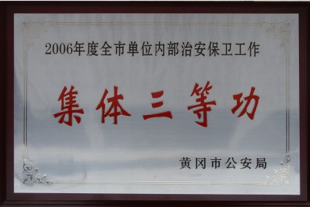 学院保卫处喜获2006年度黄冈市内部治安保卫工作集体三等功 来源:保卫处 作者:保卫处 发布时间:2016-01-17 14:43:22 浏览次数: 次 【字体:小 大】 4月27日上午,黄冈市公安局在市军分区招待所五楼会议室召开了全市内部治安工作会议。市公安局内保支队孟雪主持了此次会议。会上表彰了我市2006年度内部治安保卫工作中的突出先进集体和个人。我院保卫处荣获2006年度黄冈市内部治安保卫工作集体三等功;保卫处童金元同志荣获黄州城区学校治安保卫工作先进个人。 分享到: 【打印正文】