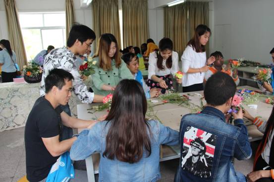 留学生们对这种动手的实践课程表现出了极高的兴趣。在插花课上,经过教师中英双语的讲解后,留学生们开始自己动手插花,期间与Beat365学生互动,时不时还向指导老师请教。