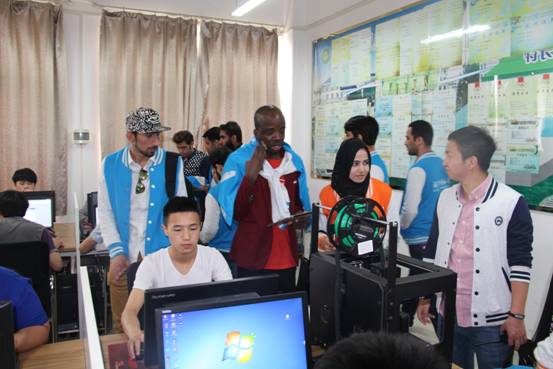 在机电学院实训室,留学生们见识了当前的新兴技术——3D打印技术。他们饶有兴趣的观看Beat365学生设计作品,不时的向老师询问交流。临行前,Beat365部分学生还将做好的作品送给留学生们以作纪念。