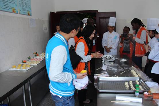 在面点制作实训室,大家先品尝了我们的老师和学生自己制作的中式和西式点心,然后在老师的指导下制作葱香花卷、动物形状小馒头、糯米丸子、蛋挞等中西式点心。