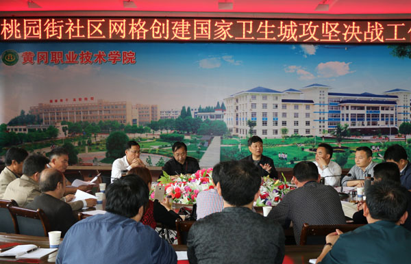 5月11日上午,桃园街社区网格创卫攻坚决战现场会在黄冈职院四楼中心会议室召开。市委创卫领导、黄冈职院党委书记张新佳,区创卫领导、黄州区人大副主任罗京平,黄冈职院副校长万俊华、刘东山,校长助理刘明涛,桃园街网格指挥长邓国璋、南湖桃园街社区书记孙和平、桃园街网格指挥部主协创单位、辖区成员单位负责人、黄冈职院爱卫会部分领导参加会议。