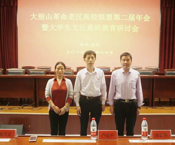 5月20日,大别山革命老区高校联盟第二届年会暨大学生文化素质教育研讨会在安庆师范大学举行,来自鄂豫皖三省20余所高校70多位代表热情与会,共享盛事。学校党委委员、工会主席郑柏松,党委委员胡燕,团委书记杨勇,机电学院党总支副书记李宁,交通学院辅导员黄伟老师应邀出席会议。